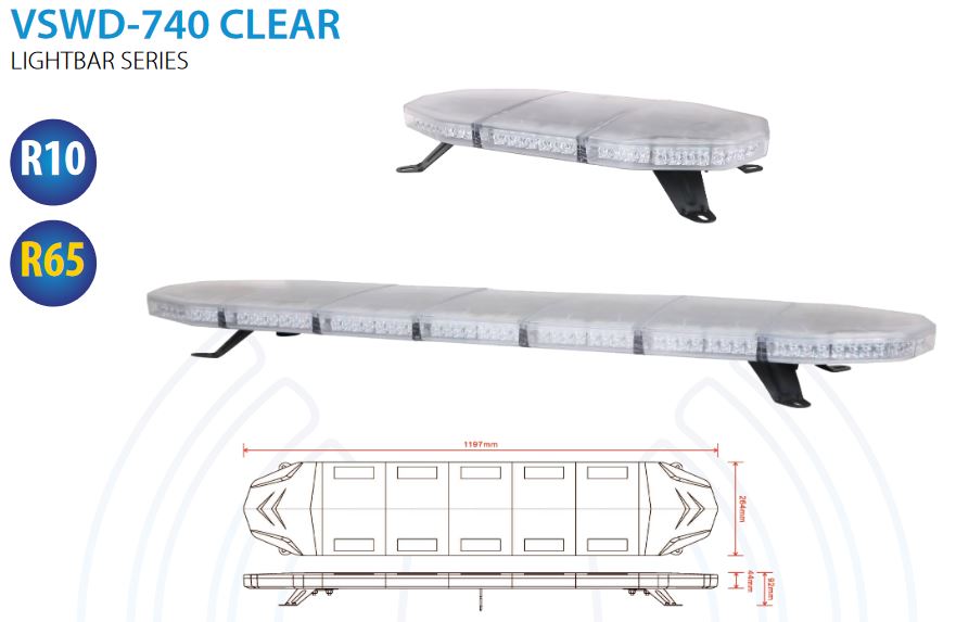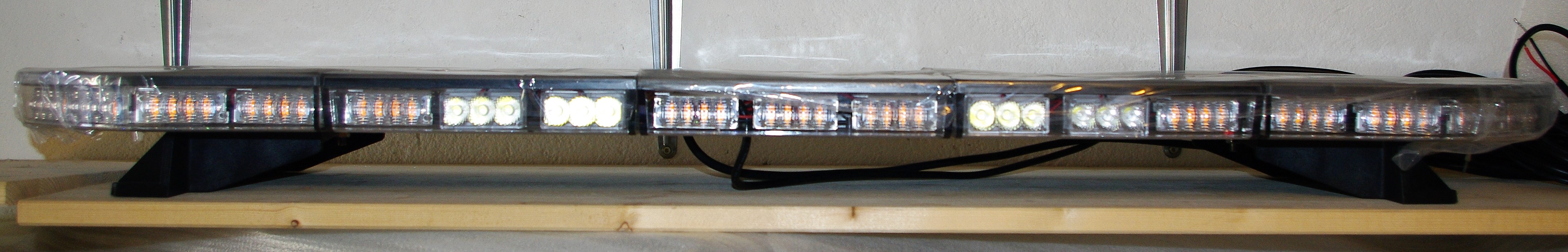 VSWD - 730 LED Light Bar 12/24V, Festmontage diverse Blitzmuster Gelb, Blau andere Farben auf Anfrage klare Haube, Farbe Abdeckung wählbar mit oder ohne Beschriftung Speziell: inkl. weisse Front und Seiten LED's (sogenannte Takedown & Alley Light) Höhe Montagefuss ca. 5 cm Länge 117 cm (46") Preise auf Anfrage Zulassung ECE R 10 / R65 |