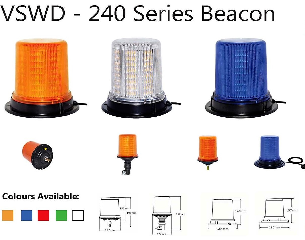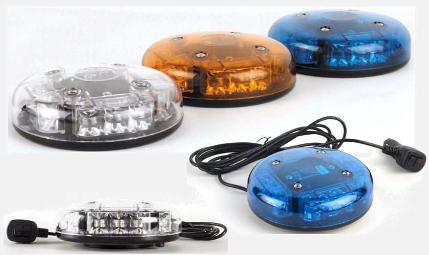 VSWD - 240 Serie LED Leuchte 128 SMD LED Module 12/24 Volt gelbe oder blaue Haube Dualcolor mit klarer Haube Verschiedene Montagemöglichkeiten: - Magnethaftung mit Zigarettenanzünder - zentraler Gewindebolzen - DIN Montage diverse Blitzmuster H: ca. 150-160 mm Zulassung ECE R65 / R10 Preise auf Anfrage |