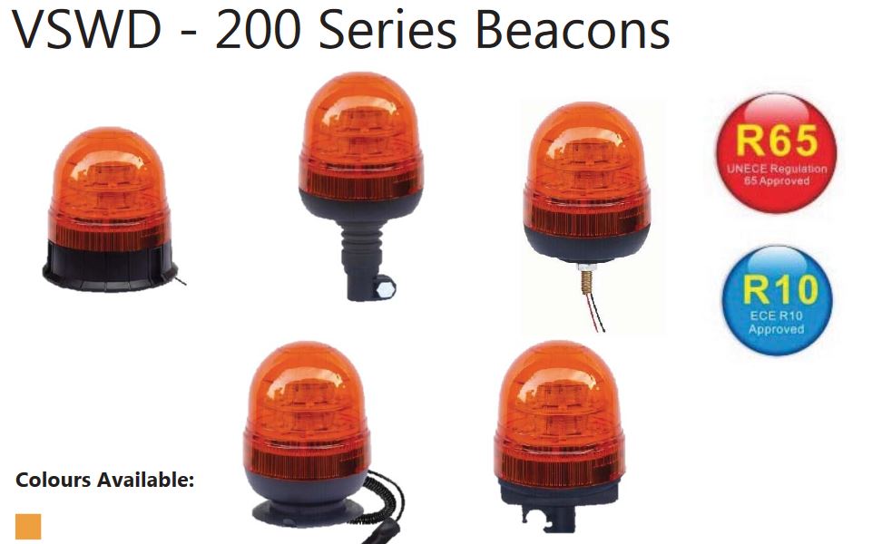 VSWD - 210 Serie LED Leuchten - 16 LED Module - 10-30 Volt - 4 Blitzmuster - amber Verschiedene Montagemöglichkeiten: - Magnethaftung mit Zigarettenanzünder - Flexi DIN - 3 Schrauben Montage - 1 Bolzen Montage Zulassung ECE R65 / R10 Preise auf Anfrage |