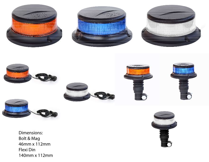 VSWD - 231L LED Leuchten LED Version: - 18 LED Module - 12/24 Volt - 4 Blitzmuster - farbige oder klare Haube Verschiedene Montagemöglichkeiten: - Magnethaftung mit Zigarettenanzünder - Flexi DIN - 3 Schrauben Montage H: 45 mm / Durchmesser: 110 mm Zulassung ECE R65 / R10 Preise auf Anfrage |