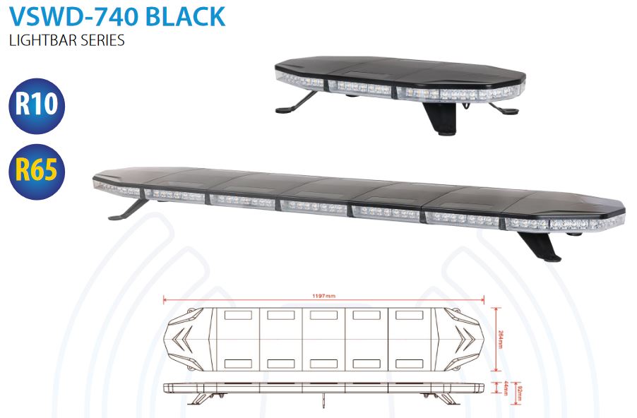 VSWD - 740 LED Light Bar 9-30 V, Festmontage diverse Blitzmuster Gelb klarer oder schwarzer Deckel Breite: 27 cm Höhe: 4 cm Höhe Montagefuss ca. 5 cm Diverse Längen möglich: - 55.7 cm - 87.7 cm - 119.7 cm - 135.7 cm - 151.7 cm - 167.7 cm Preise auf Anfrage Zulassung ECE R10 / R65