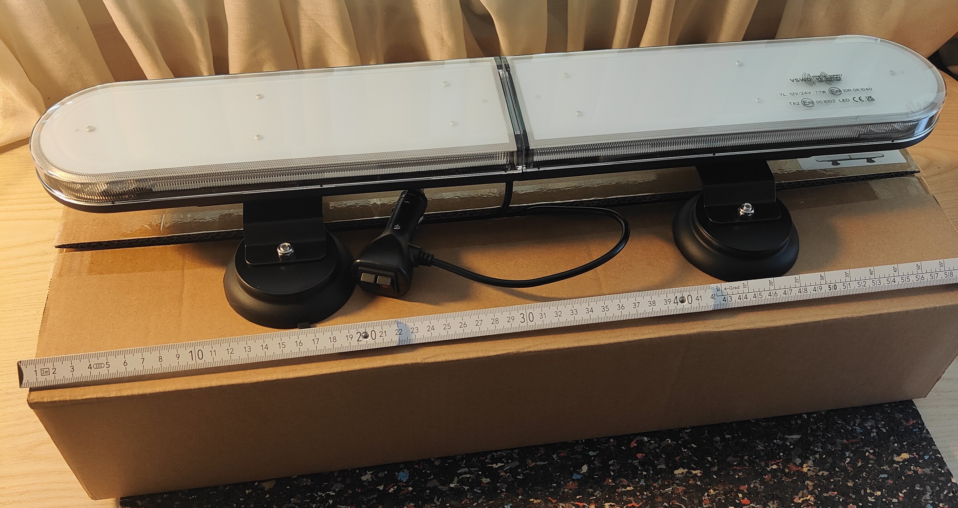 VSWD 771-M-A LED Mini Bar 108 LED's, 12/24V, Magnethaftung, Anschluss am Zigarettenanzünder oder Festmontage diverse Blitzmuster klare Haube Gelb L: 600 mm, B: 100 mm, Preise auf Anfrage Zulassung ECE R 65 / R10