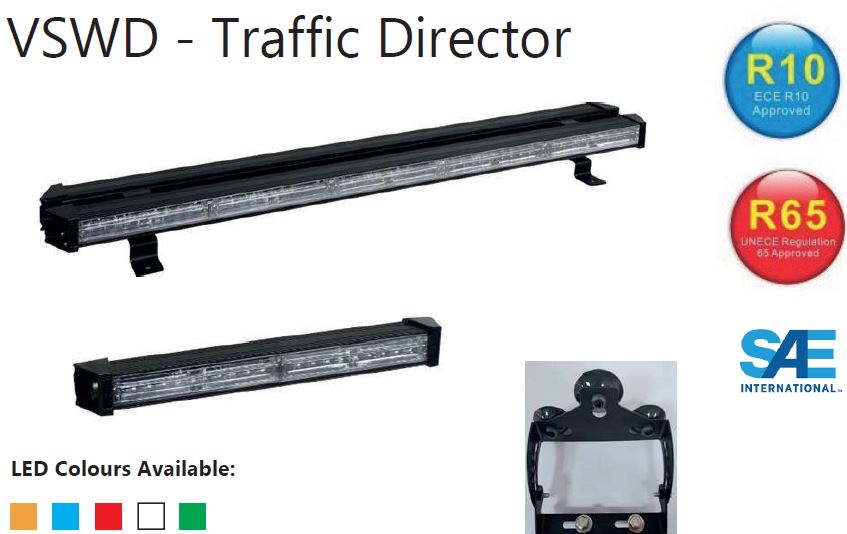 VSWD-TD 31 Traffic Director externe oder interne Verwendung 10-30 Volt Gelb, Blau*, Rot, Grün, Weiss, Dualcolor verfügbar diverse Blitzmuster verschiedene Längen ECE R10 / R65 Zulassung Preise auf Anfrage |