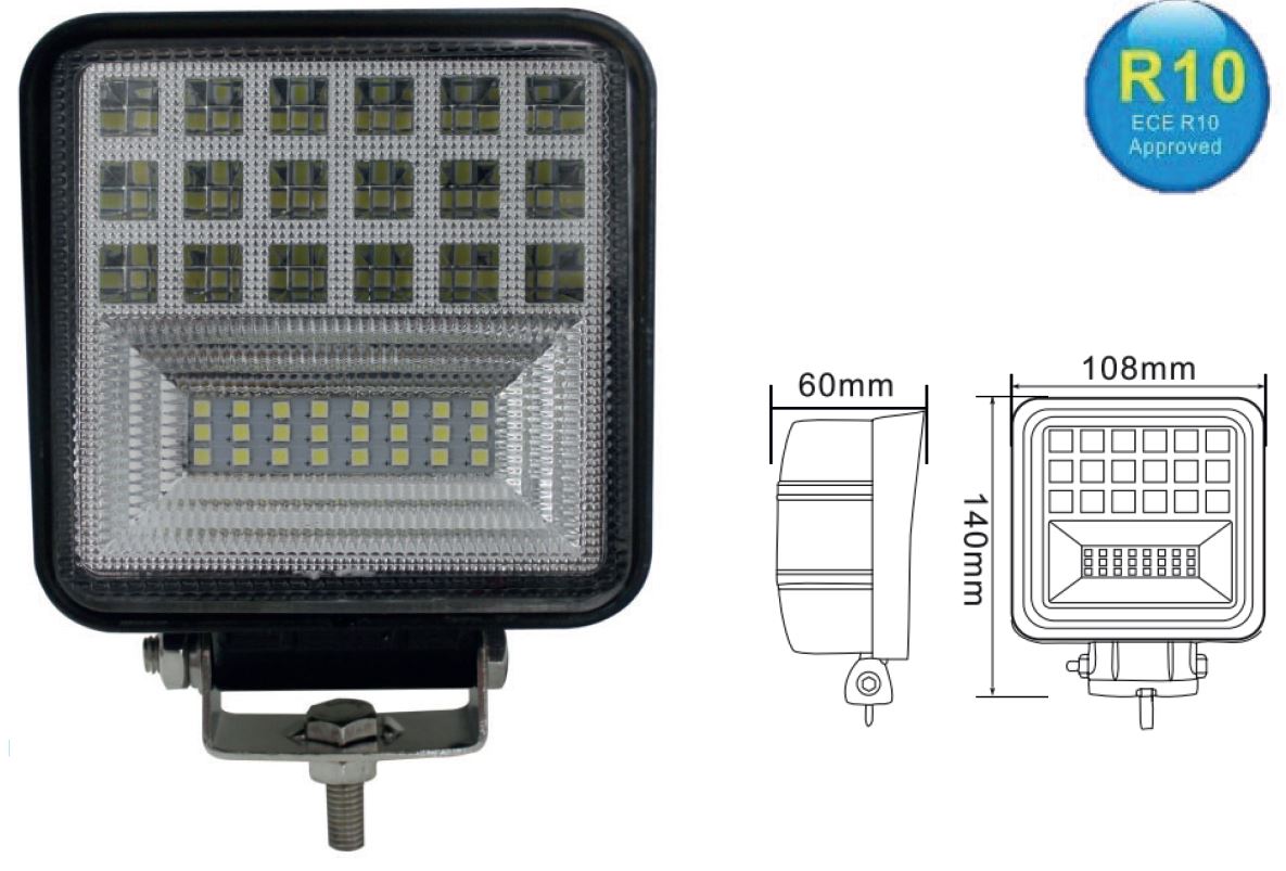 VSWD-634 Work Lamp - Flut- und Spotlicht Kombo Leuchte - 42 LED's / 48 Watt / 3500 Lm - 10 - 30 Volt; 140x108x60 mm Preise auf Anfrage ECE R10 Zertifizierung |